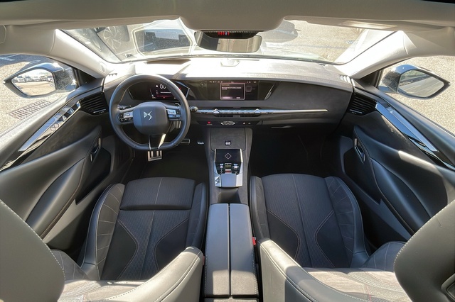 • Intérieur Tissu Tressé Basalte avec Alcantara : Planche de bord en alcantara Panneaux de portes en alcantara Console centrale en alcantara Sellerie en Tissu Tressé Basalte avec Alcantara et toile DS Décors de panneaux de porte Chrome guilloché Volant en cuir fleur Mistral avec surpiqûres Ciel de pavillon Salin