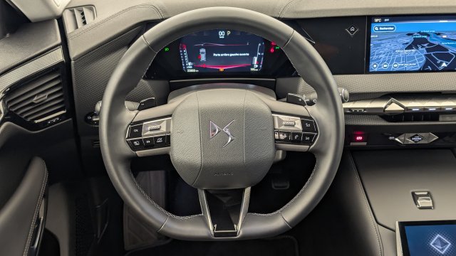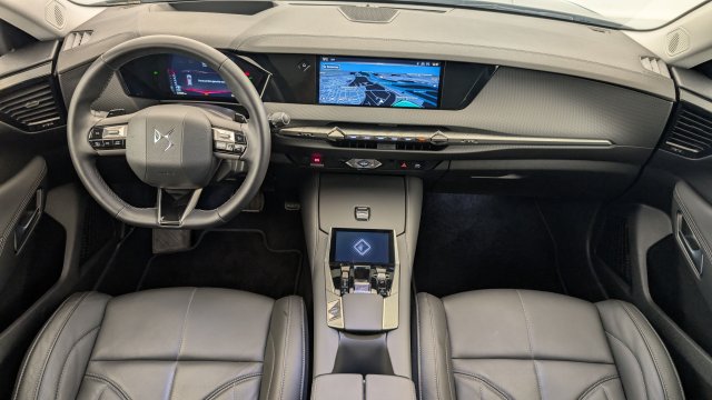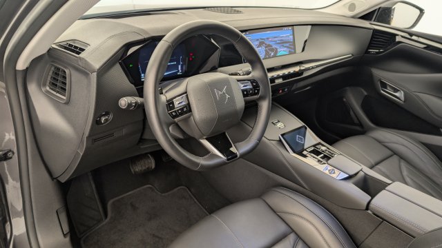 • Intérieur Cuir grainé Noir Basalte et Toile DS : Ciel de pavillon clair Décors de panneaux de porte Chrome guilloché Volant en cuir fleur Mistral Console centrale en Toile DS Mistral Planche de bord en toile DS Noir Basalte façon écaille Panneaux de portes en toile DS Noir Basalte façon écaille Sellerie en Cuir grainé Noir Basalte et Toile DS