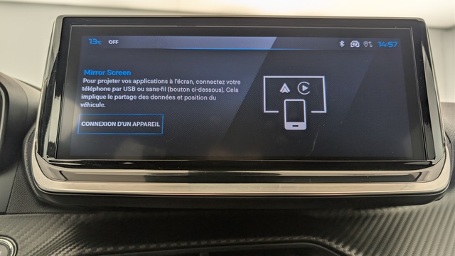• Peugeot i-Connect: Radio DAB avec écran tactile couleur personnalisable 10" HD, Bluetooth - Mirror Screen sans fil (Apple CarPlay/Android Auto) - Wifi - 1 prise USB type C ( Data+charge), 1 prise USB type C (Charge) sur console AV