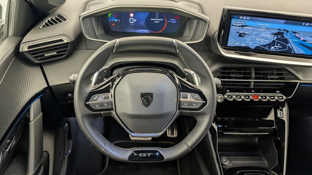 • Volant compact cuir fleur avec commandes multimédia intégrées et badge GT