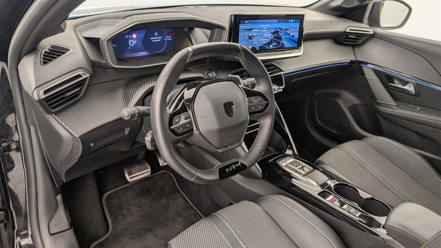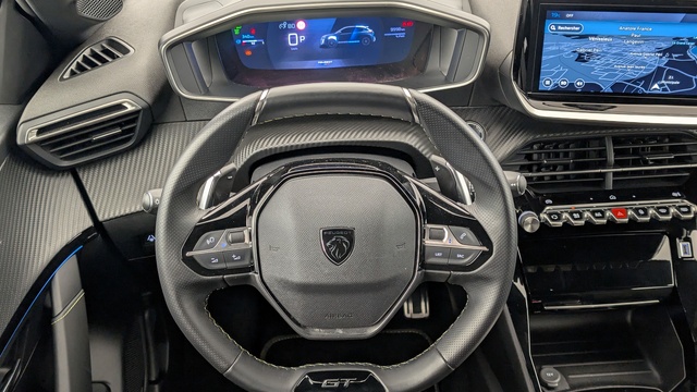 Volant compact cuir fleur avec commandes multimédia intégrées et badge GT