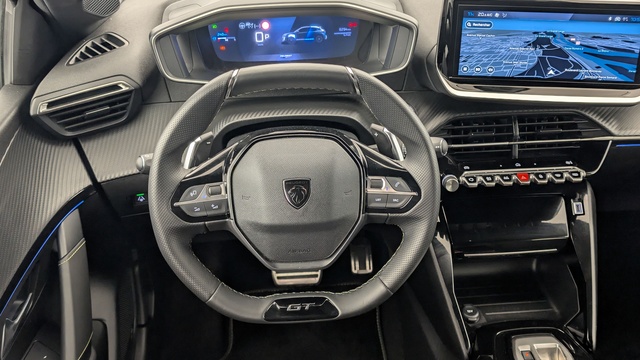 Volant compact cuir fleur avec commandes multimédia intégrées et badge GT