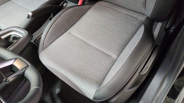 • Sellerie textile et textile enduit grainé gris/noir avec surpiqûres cuivre