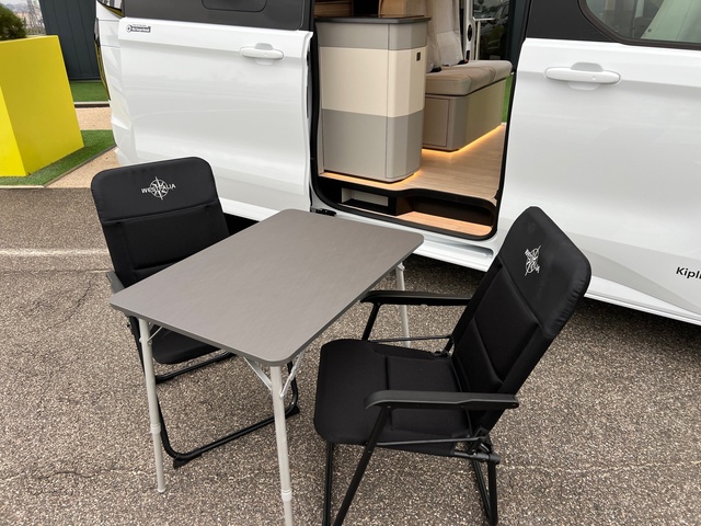 Kit outdoor (étui avec 2 fauteuils de camping et intégration sur le hayon arrière de la table avec 4 pieds ajustables)